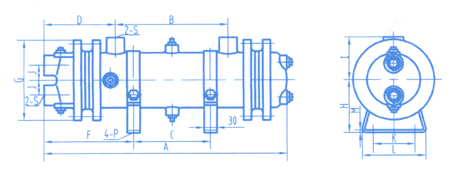 | 型號 | 冷卻面 積m2 | A | B | C | D | F | G | H | I | J | K | L | M | P | O | S | 重量kg |